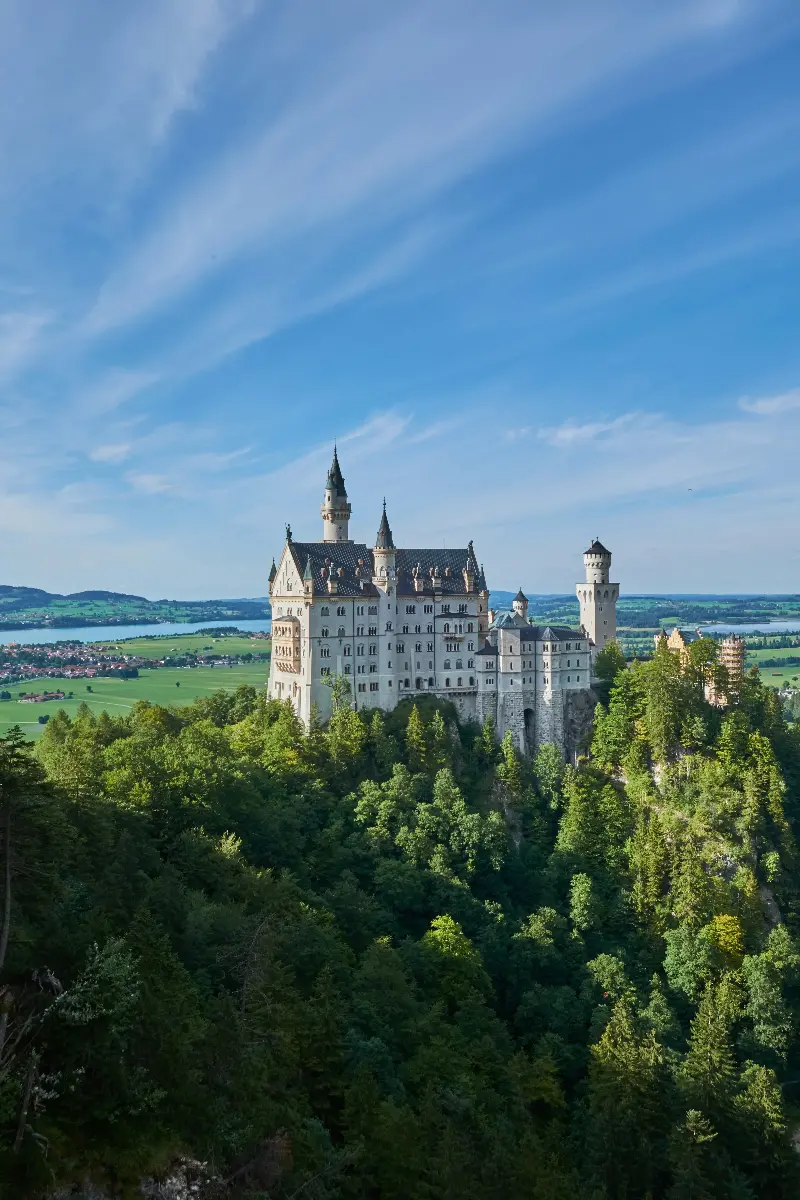 - Lâu đài Neuschwanstein (Đức): Nguồn cảm hứng cho lâu đài trong phim hoạt hình Disney, với kiến trúc lãng mạn giữa cảnh sắc núi rừng thơ mộng vùng Bavaria.