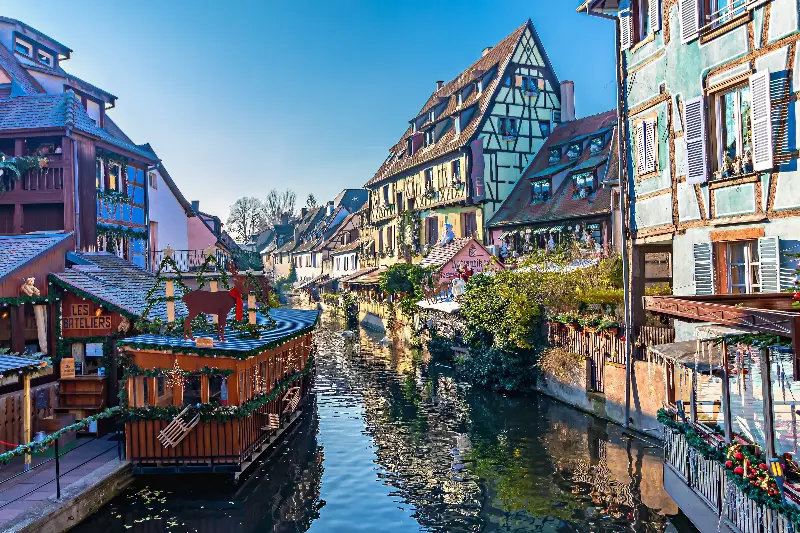 Colmar thường được gọi là “Tiểu Venice” của nước Pháp với kênh rạch thơ mộng len lỏi giữa những ngôi nhà gỗ sắc màu sặc sỡ. Mùa đông, Colmar trở nên lãng mạn đến nao lòng, đặc biệt khi các khu chợ Giáng Sinh nhộn nhịp mở cửa, con phố ngập tràn ánh sáng lung linh và hương thơm bánh quế ngọt ngào. Ở đây, mỗi góc nhỏ đều có thể trở thành bức tranh tuyệt đẹp khiến bạn muốn dừng lại thật lâu chỉ để hít hà cảm xúc đặc biệt này.