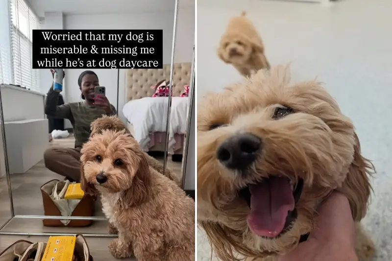 Calvin’s day care adventure was in stark contrast to another pet owner who shared a video this week as she noticed her cavapoo being picked up and snuggled, leaving her with what she called “mom guilt.”